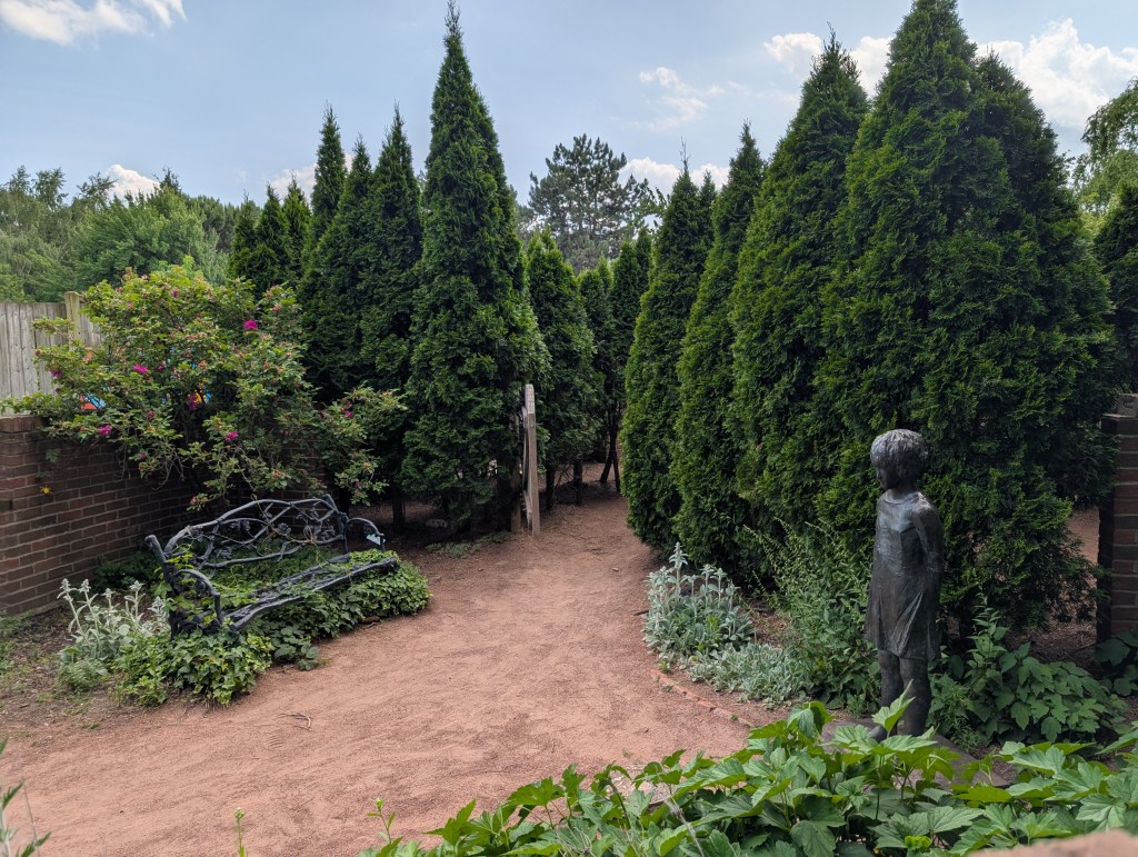 I skipped ahead a bit but that is ok. I will rewind just a bit, since that was the last day of camp that he did that. Anyway, after our second day was over, another really really good day, the three of us went to the MSU Children’s Garden. It didn’t take us very long to stroll through but it was still very fun. There were people working it (students maybe) and they took time to show Wyatt a cool plant, called a sensitive plant that closes up when you touch it. The garden itself was really cool, and Wyatt loved exploring it, especially the musical tiles. After this we grabbed some dinner to relax again in the hotel.