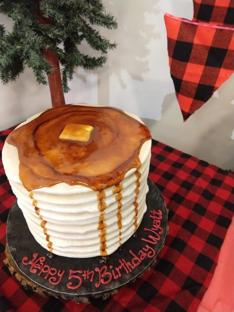 Wyatt loves to be outside in the woods, and he also loves pancakes – so I thought that a lumberjack party would be fun! With a March birthday too, it works with the maple sugaring season as well! We planned with our local metropark (where we spend quite a bit of time, and have for over 16 years we learned recently!) to have Wyatt’s birthday party there, and one of their interpreters would do a maple sugaring demonstration for the kids as part of the party. Maple syrup, pancake cake, woods and nature – the perfect recipe for my kiddo’s party!