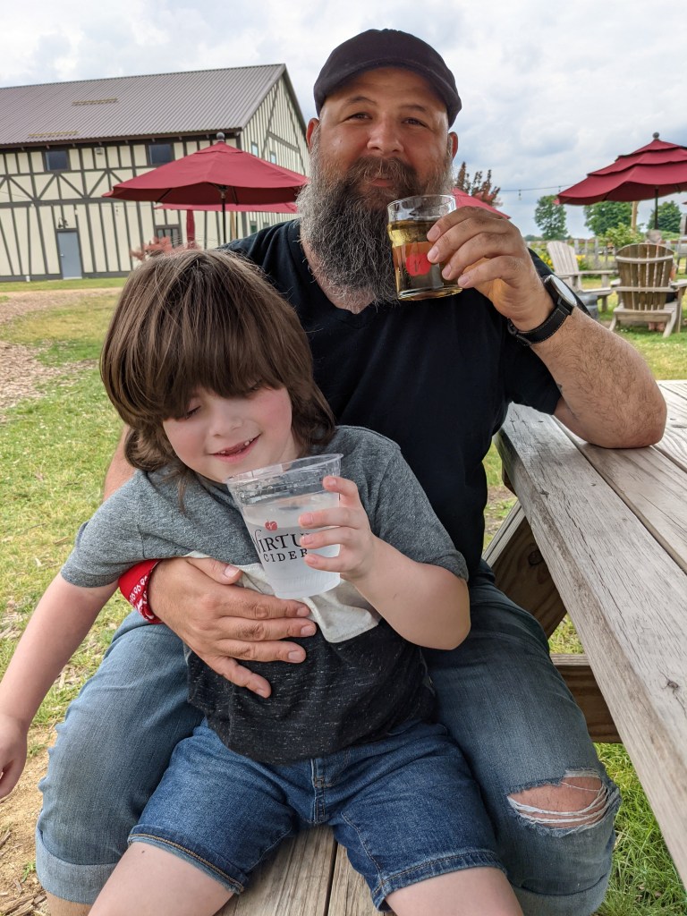 Our adventure kicked off with lunch at Virtue Cider in Fennville. I love Virtue Cider, and was so excited to take an adult field trip (plus one child) to their ciderie. It was spendy but I loved it, and I have wanted to go for a long time. I ordered the Briard cider with a turkey and havarti sandwich, Billy enjoyed the ham and gruyere with a glass of Abeille, and Wyatt was happy with a grilled cheese and water. I knew I was going to buy a bottle of one that was difficult to buy at home, so I opted for the Lapinette. (You guys know I love rabbits!)